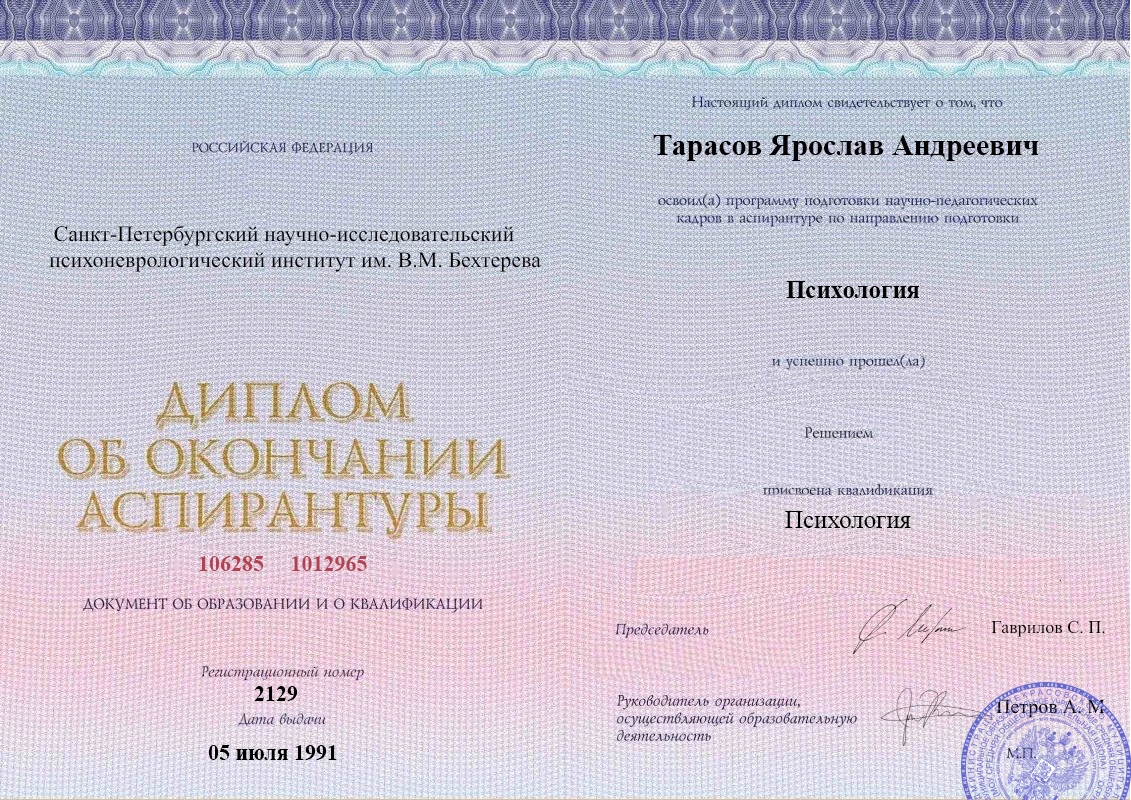 • Российский национальный исследовательский медицинский университет имени Н.И. Пирогова (психиатрия-наркология).